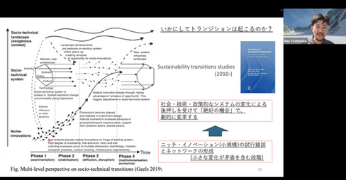 地球環境への影響を考慮してフライトシェイム(飛び恥)やマイクロツーリズムの実践を行うフランス・グルノーブルの若者について,その行動の動機や基準について,欧米圏の観光地理学で展開しているサステナブル・トランジション研究の視点からご説明いただきました。最新のトピックに基づく議論で,大変刺激的なご発表でした。